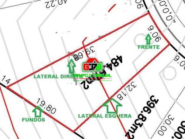 O terreno tem 484,67 m2 e as seguintes medidas: frente de 9,06 m em curva para a Rua Benedito Pinhal dos Anjos; do lado direito tem 39,68 m; do lado esquerdo tem 32,18 m; nos fundos tem 19,80 m e faz divisa com área verde.